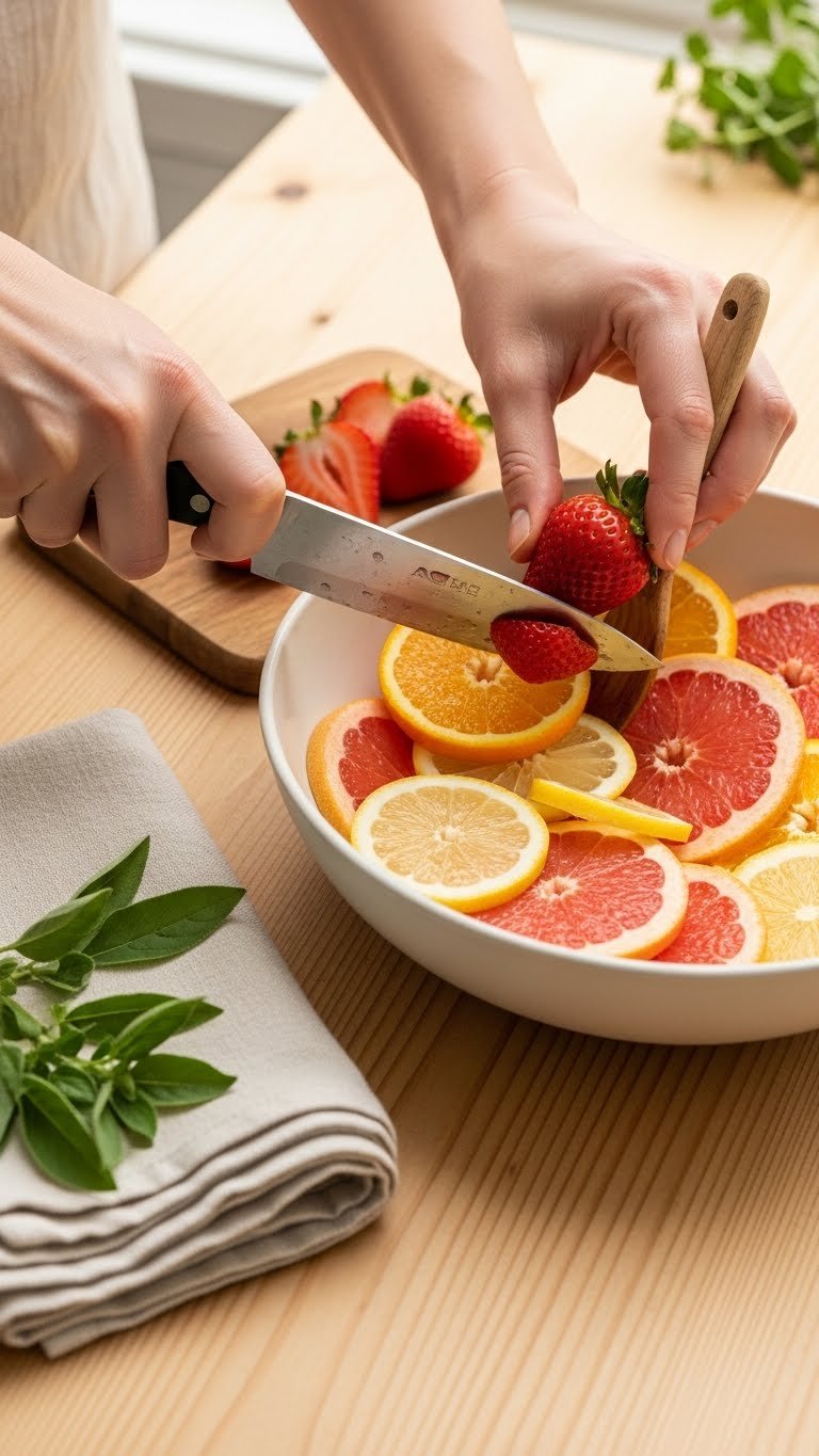 - Slice strawberries and citrus thinly so they release juice quickly.