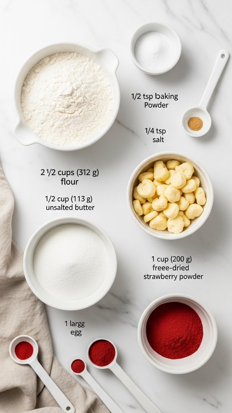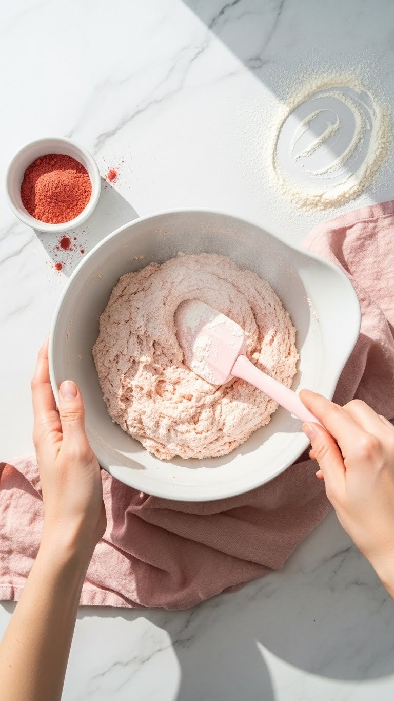 Tip: Using freeze-dried strawberry powder gives color without extra moisture. If you use purée, reduce other wet ingredients slightly.
