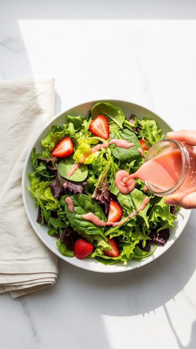 You'll learn what to buy, how to prep strawberries for the silkiest texture, step-by-step blending instructions, and simple storage tips. Let's make your salads sing.