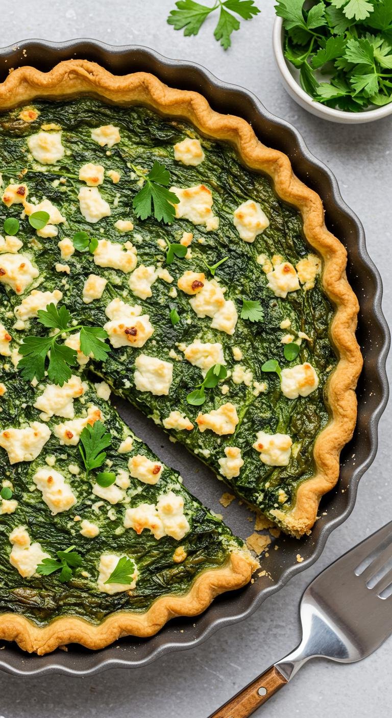 - Whisk eggs and milk together. Stir in spinach, feta, salt, and pepper.