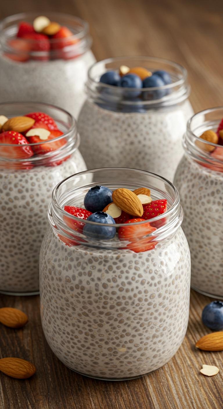 - In a bowl, mix chia seeds, almond milk, and maple syrup.