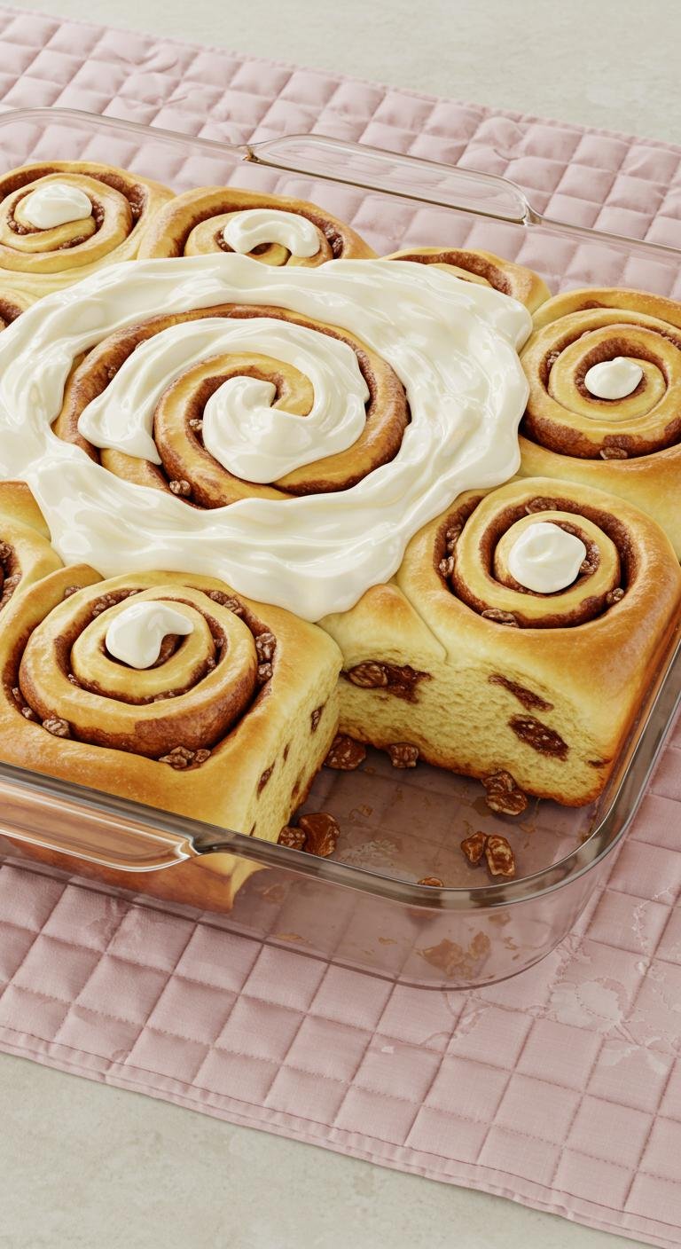 - Whisk eggs, milk, cinnamon, and vanilla, then pour over rolls. Bake for 25-30 minutes.