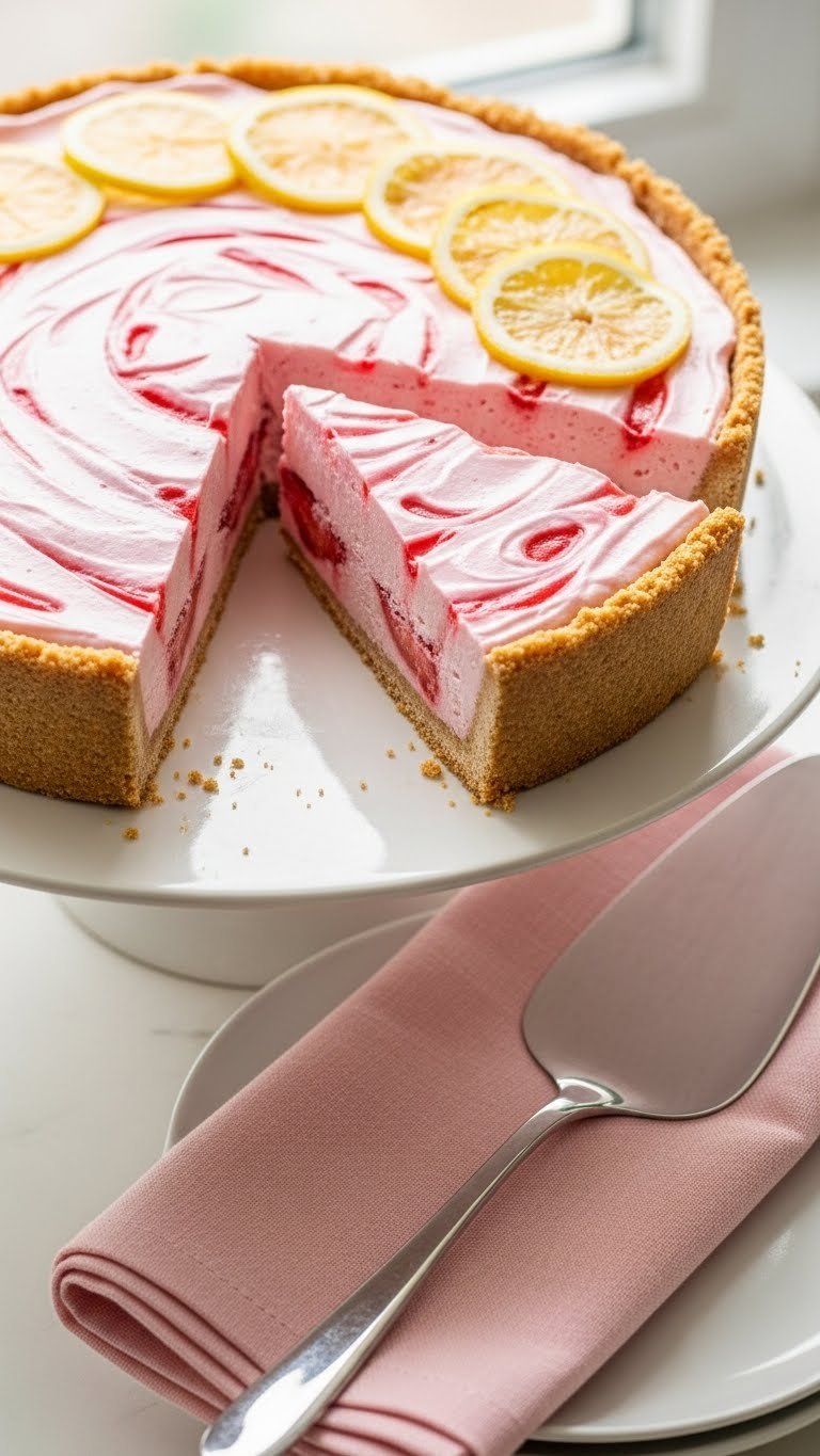 Tart lemon brightens sweet strawberry in a silky frozen filling. The cookie crust stays crisp and complements the citrus-strawberry flavor. It’s a refreshing no-bake dessert for backyard dinners. You’ll love the cool, mousse-like texture and zesty finish. The aroma is lemony with a hint of fresh strawberries.