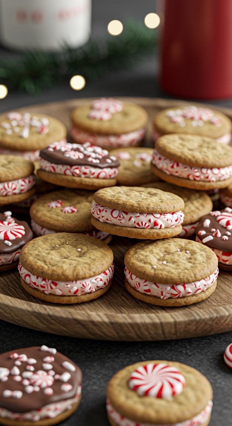 These treats sandwich peppermint bark between delicious cookies!