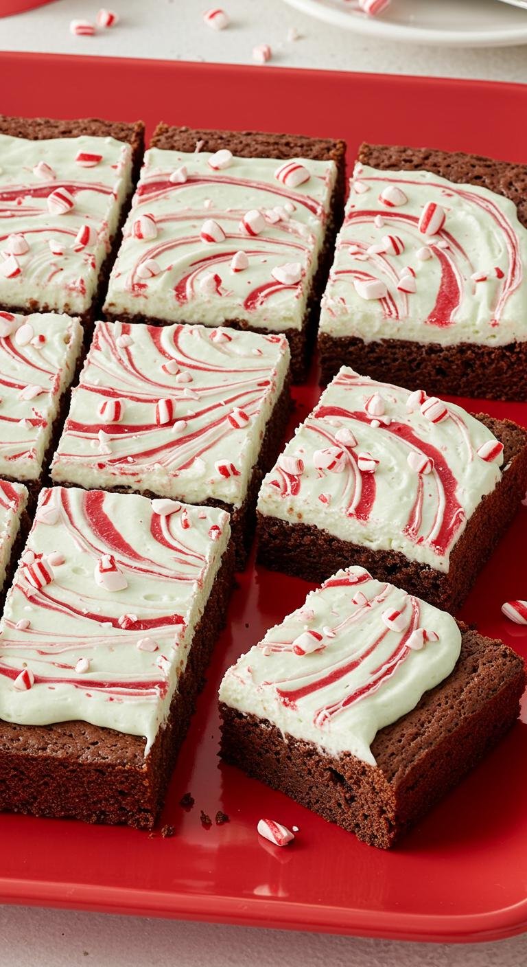 - Bake, cool, and top with peppermint frosting and candy cane sprinkles.