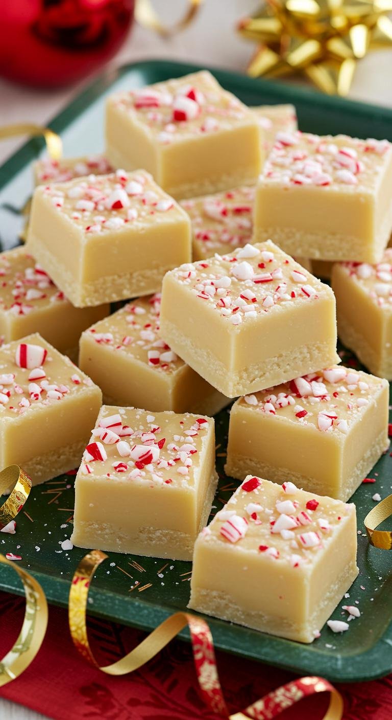- Sprinkle with candy canes and chill until set, then cut into squares.