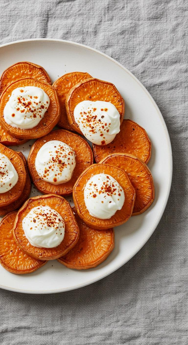 - Toss sweet potato slices with olive oil, salt, and pepper, and roast at 400°F (200°C) for 25 minutes.