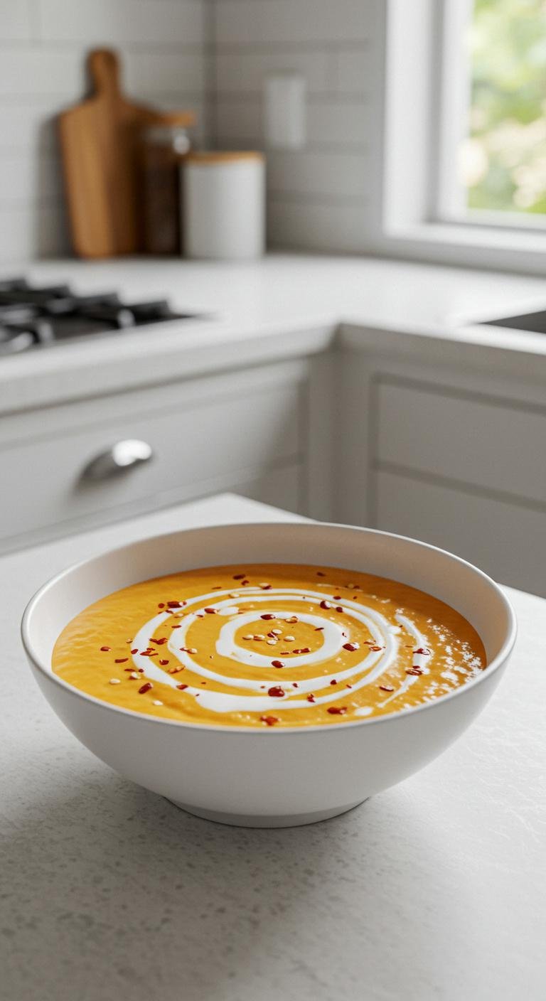 - Blend until smooth, then stir in cream, salt, and pepper.