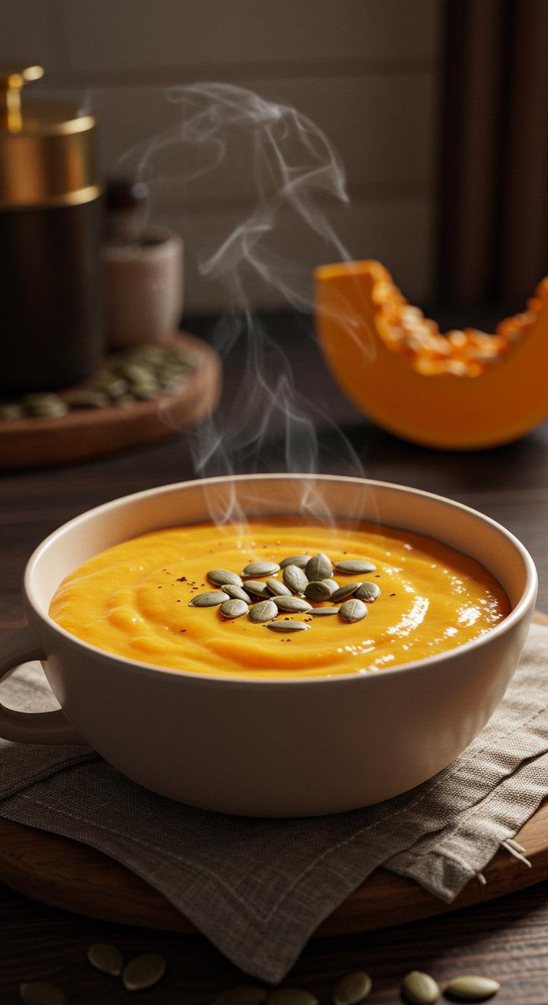 - Cook potatoes in broth until soft; stir in pumpkin puree.
