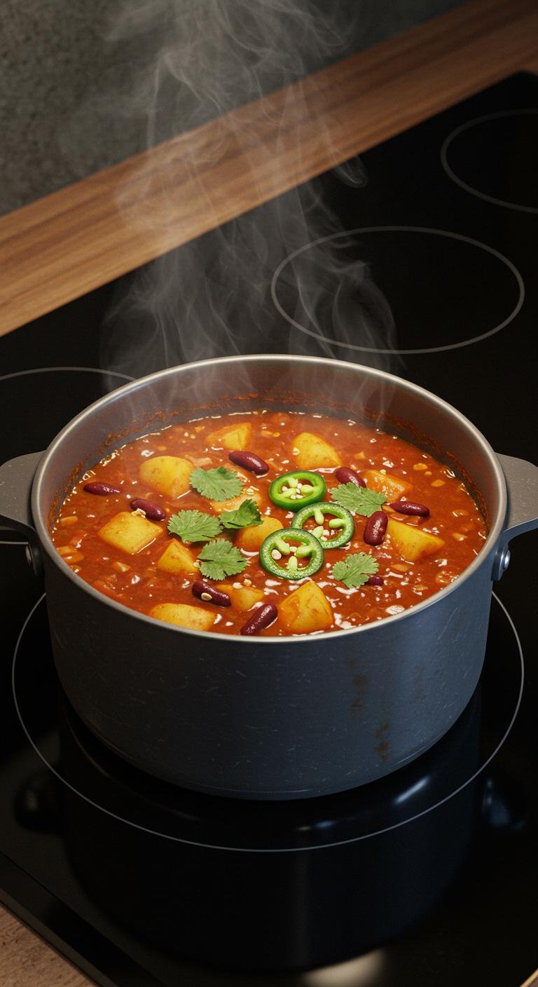 - Cook potatoes and tomatoes in 4 cups of broth until soft.