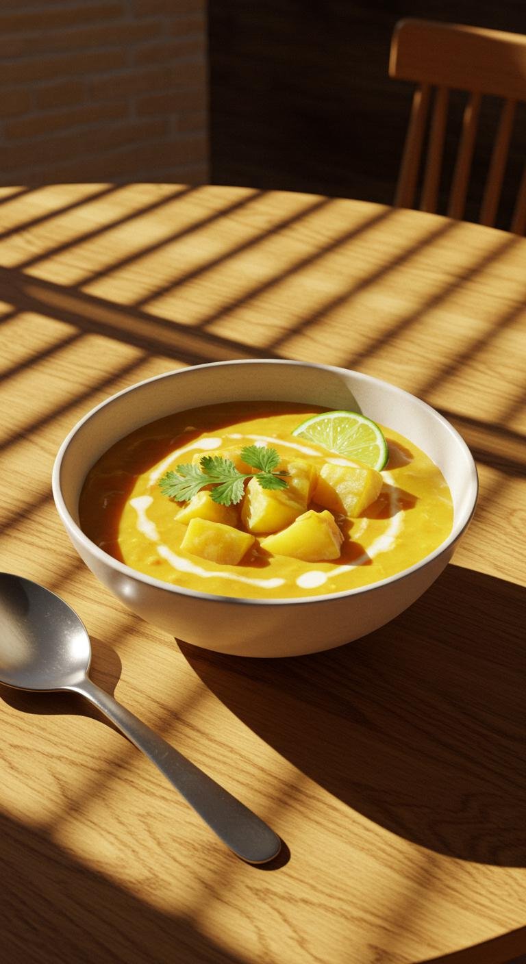 - Cook onion until soft, add potatoes and broth, simmer until tender.