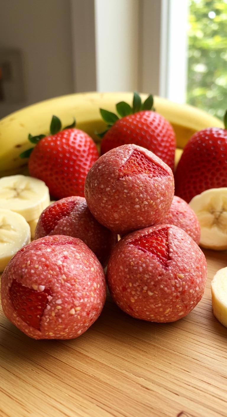 - Combine oats, banana, dried strawberries, and honey in a bowl.