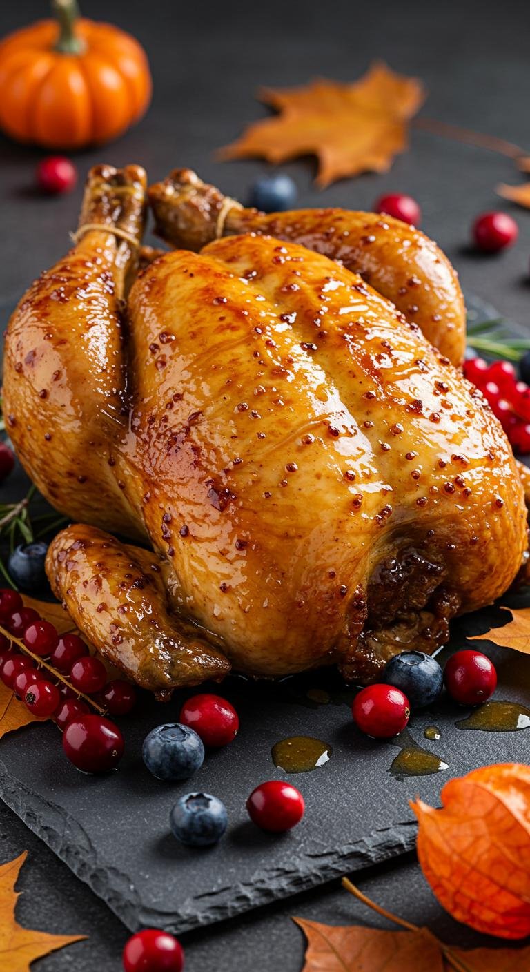 - Roast at 350°F (175°C) for 1.5 hours, basting occasionally.