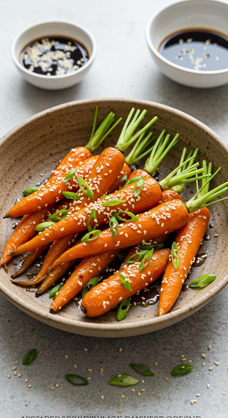 - Combine soy sauce, sesame oil, and honey; toss with carrots.
