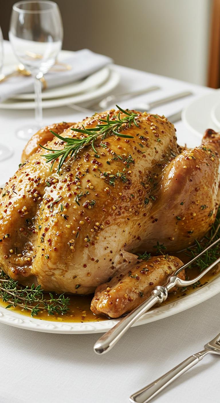 - Mix mustard, oil, herbs, salt, and pepper. Coat turkey with the mixture.