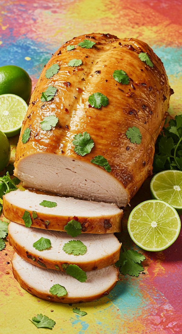 - Combine lime juice, cilantro, oil, salt, and pepper. Rub over turkey.
