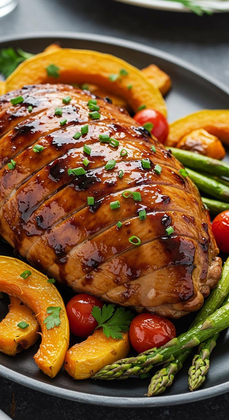 - Whisk balsamic vinegar, honey, oil, salt, and pepper. Brush over turkey.