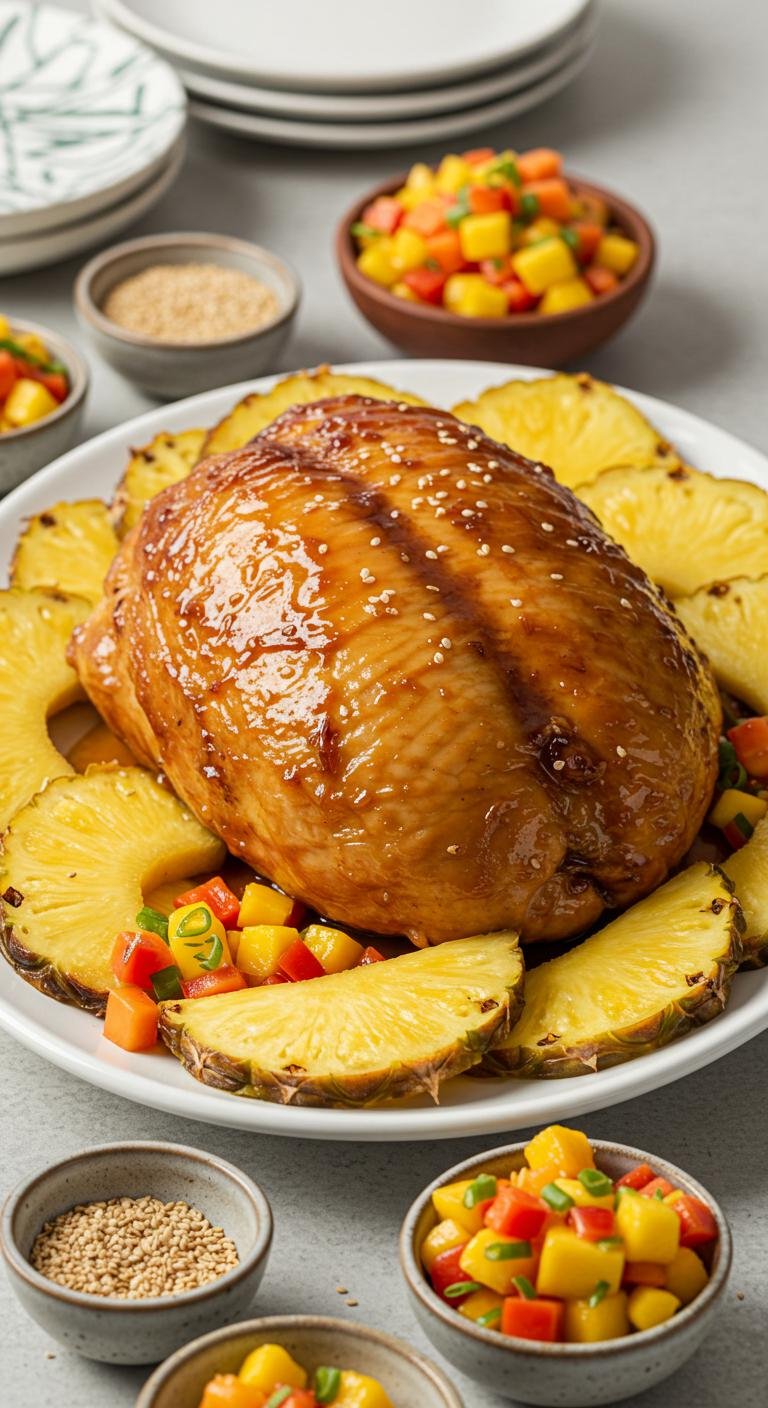 - Mix sweet and sour sauce with pineapple juice and soy sauce. Brush over turkey.