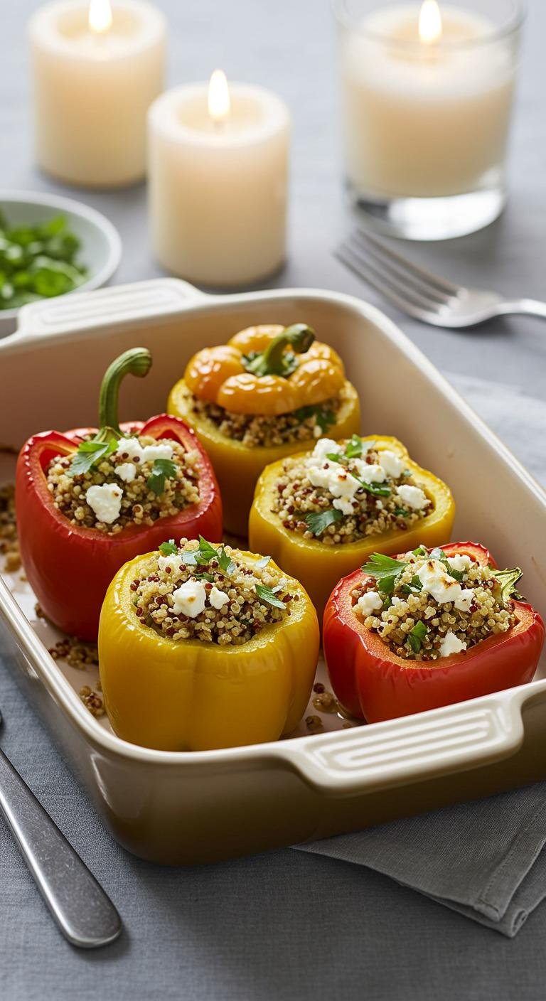 - Fill each pepper with the quinoa mixture, drizzle with olive oil.