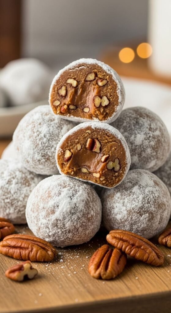 Caramel Pecan Snowball Truffles