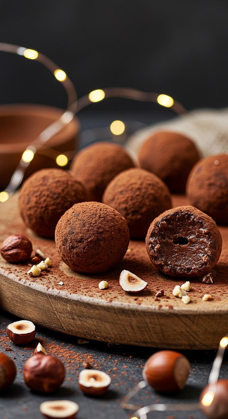 - Coat truffles in crushed hazelnuts before they set.