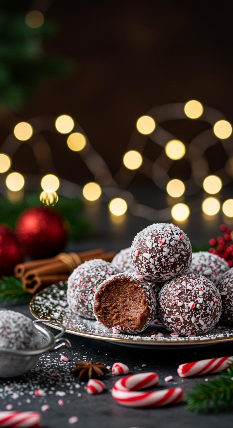 - Roll into balls and coat with powdered sugar and crushed candy canes.