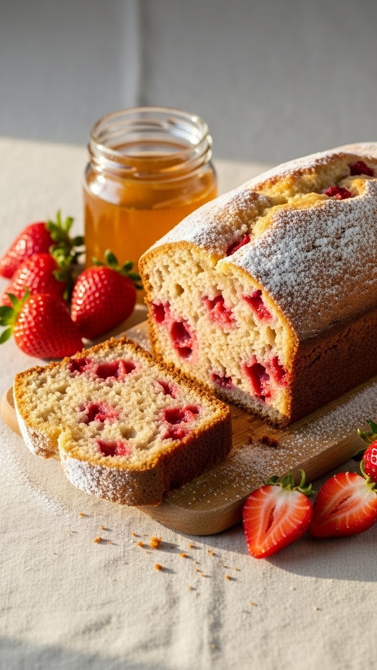 Serve sliced with a drizzle of extra honey and yogurt on the side. Garnish with sliced strawberries and a sprinkle of lemon zest. Pairs with morning coffee or herbal tea. Store wrapped at room temperature up to 2 days, or refrigerate up to 4 days. Make ahead and brush with glaze before serving for shine.
