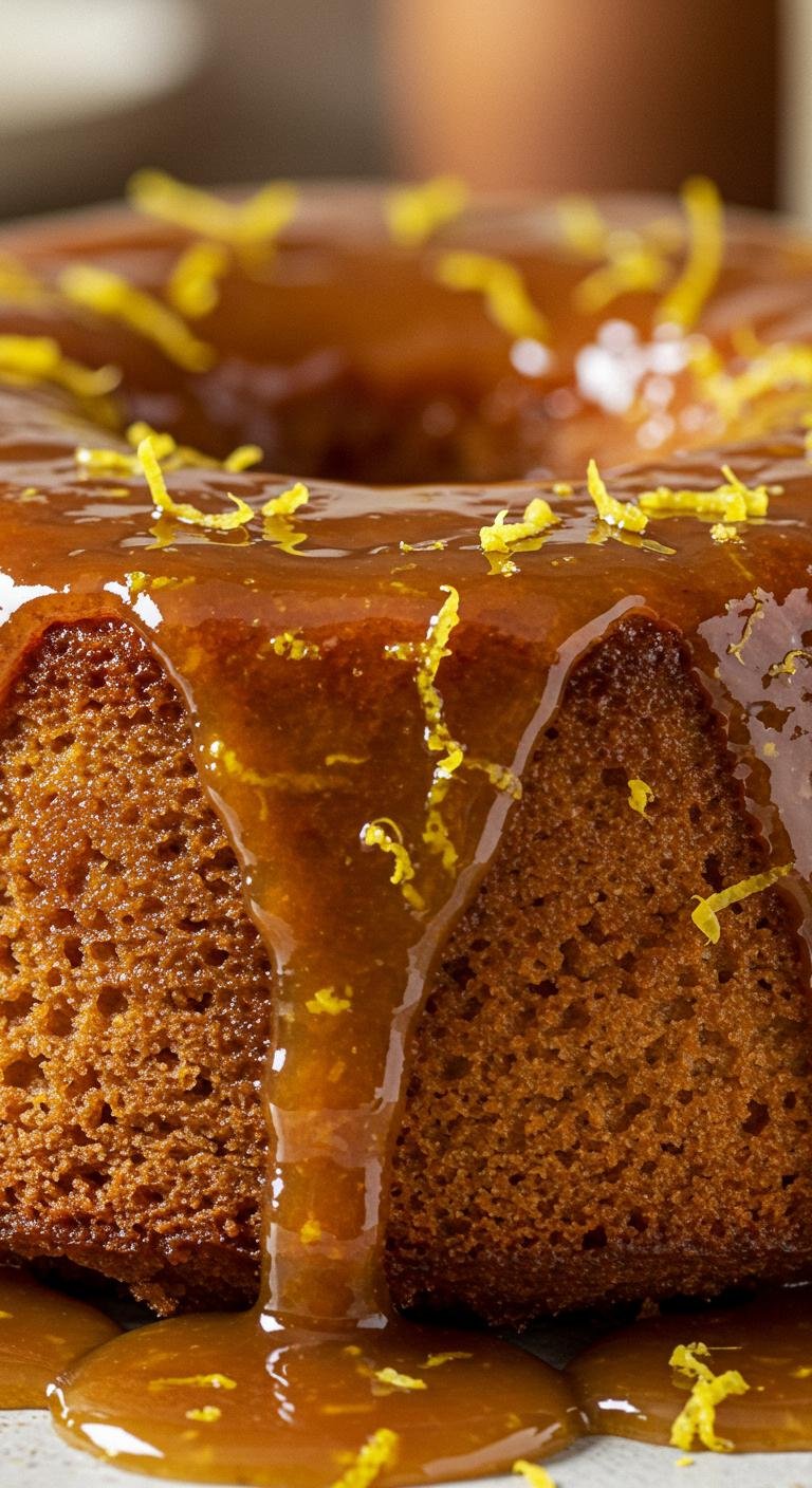 - Mix in flour, bake at 180°C for 30 minutes. Drizzle with warm caramel.