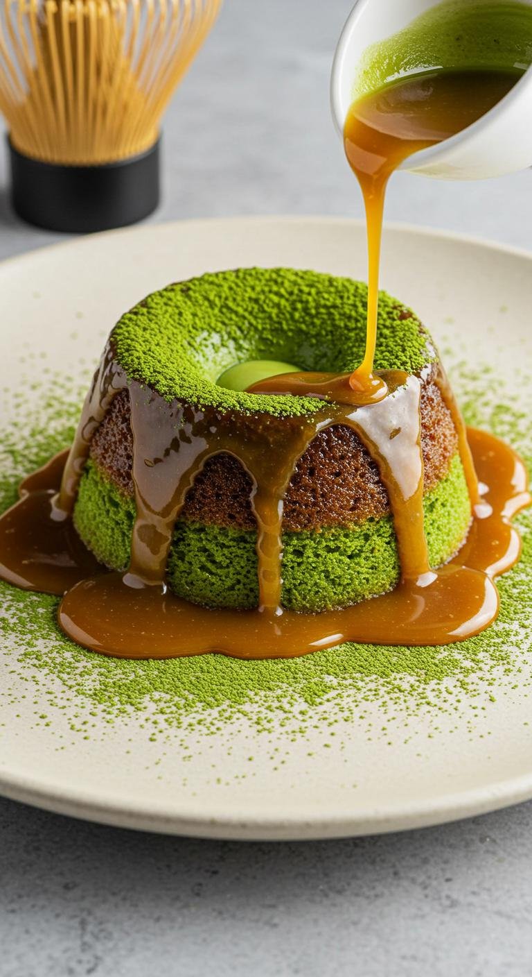 - Bake for 30 minutes at 180°C. Serve drizzled with matcha toffee sauce.