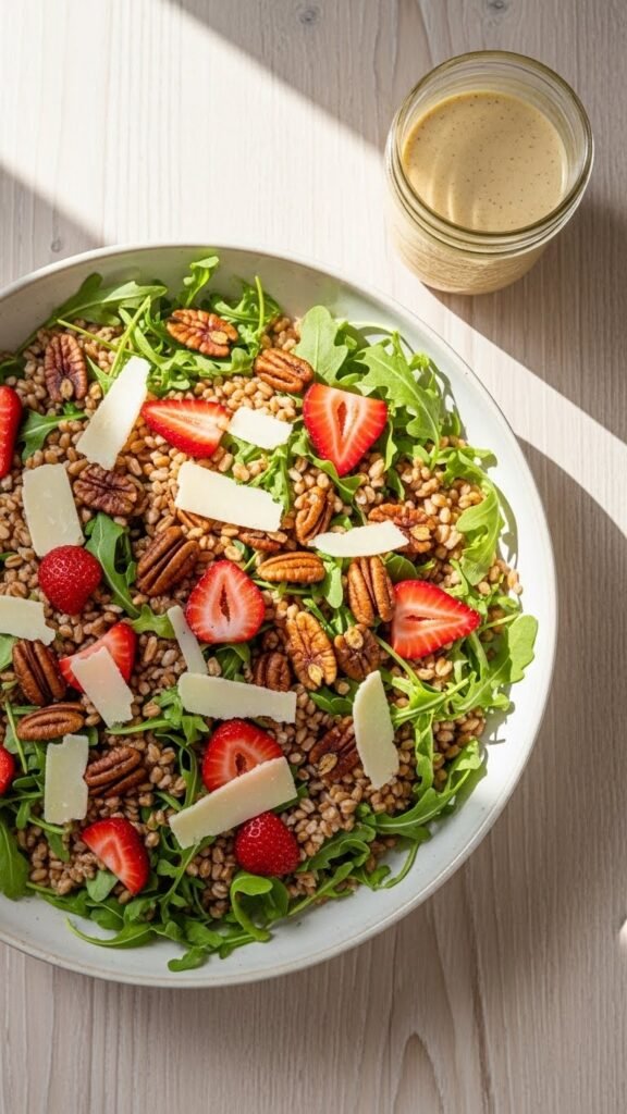 7. Strawberry Balsamic Farro Salad with Arugula & Pecans
