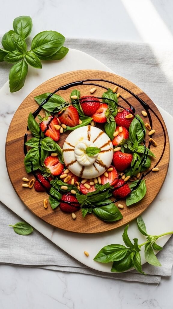 3. Gourmet Strawberry Balsamic Salads That Impress Foodies: Burrata, Basil & Toasted Pine Nut Salad