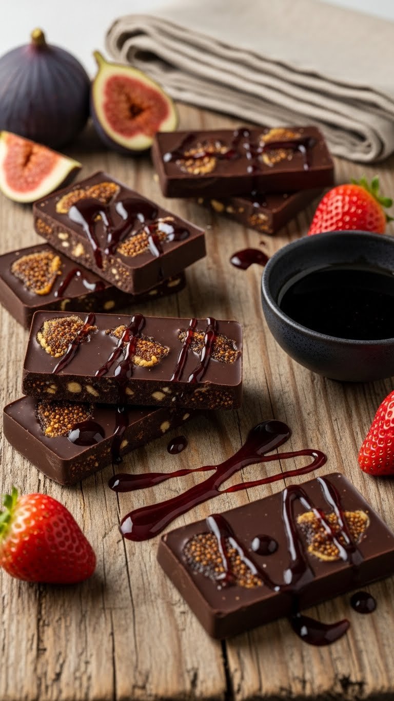 These strawberry-balsamic fig bars offer a sweet-savory contrast that stays firm during travel. Balsamic vinegar deepens the strawberry flavor while dried figs add chew. The bars have a dense but tender base. You’ll taste tangy balsamic, jammy fruit, and caramel notes from figs. They’re ideal for foodie picnics and portable dessert platters.
