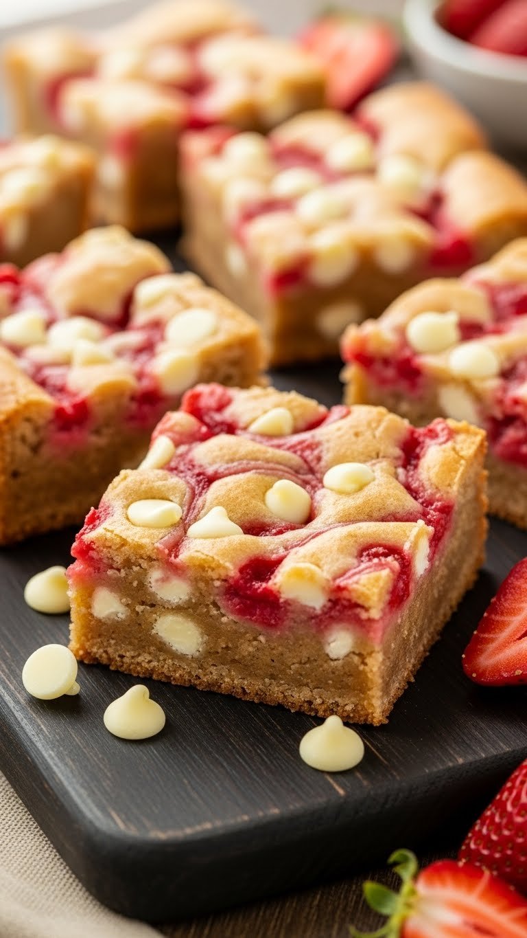 14. Strawberry White Chocolate Blondie Bars (Decadent but Travel-Ready)