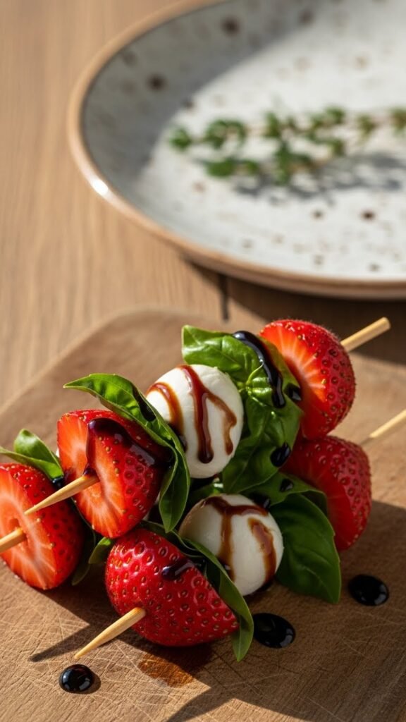 2. Fresh Strawberry Caprese Salads: Balsamic-Glazed Strawberry Caprese Skewers