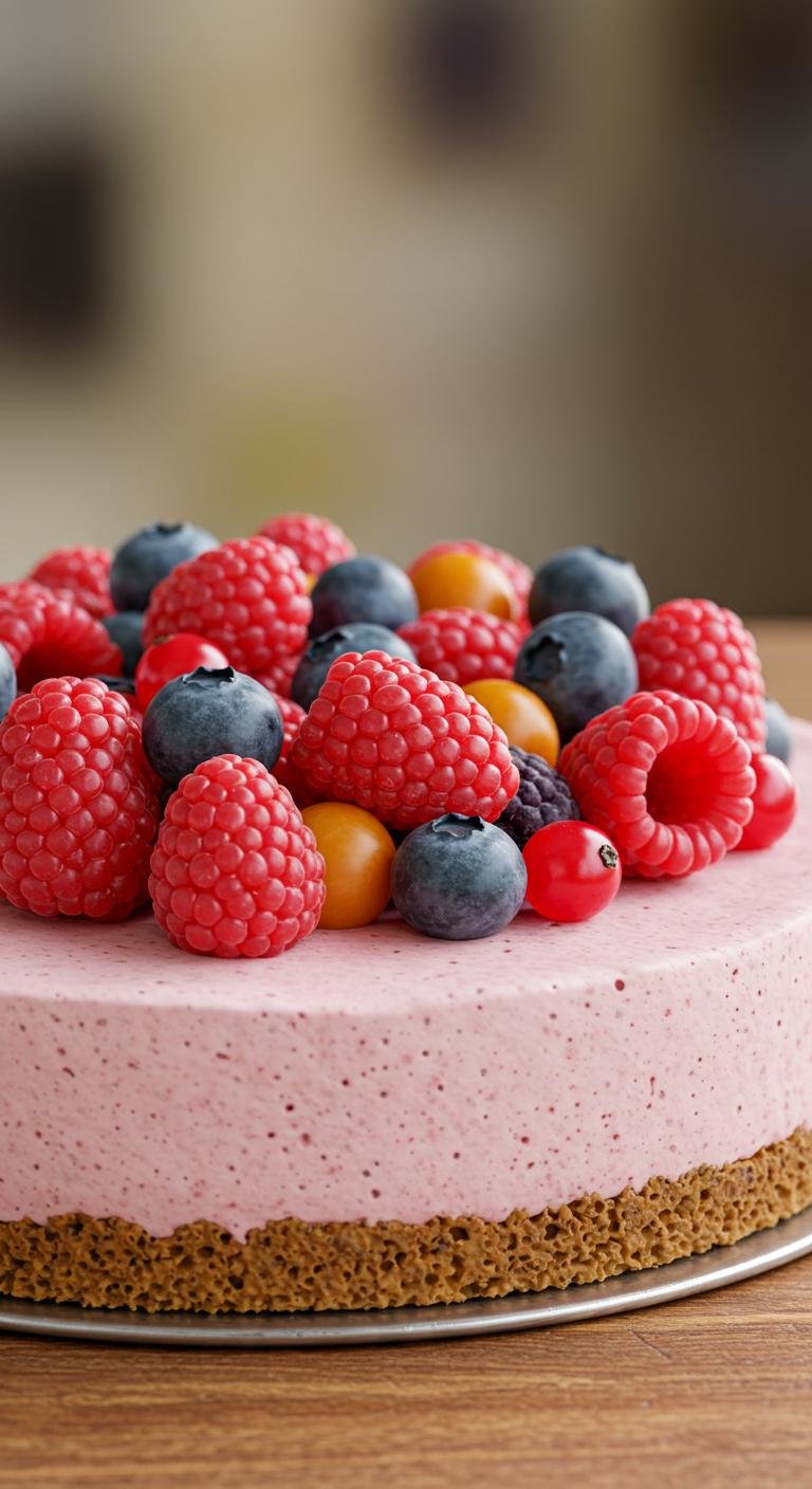 - Pour mix over the base, bake at 325°F (160°C) for 55 minutes. Cool and garnish with strawberries and whipped cream.