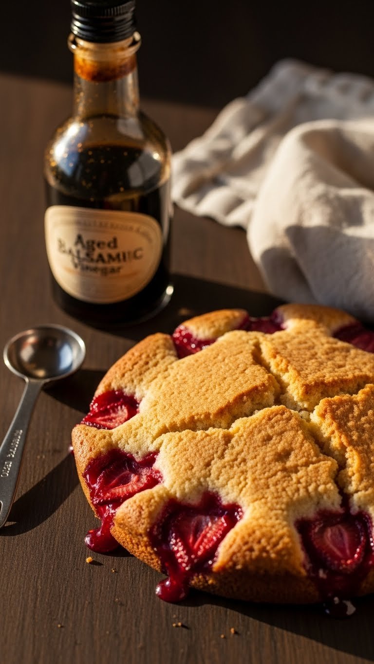 This boozy balsamic cobbler adds a splash of aged balsamic and a hint of bourbon for depth. The flavor is sweet, tangy, and slightly caramelized. It’s a grown-up dessert perfect for dinner parties. You’ll taste complex strawberry notes with warm vanilla and caramel undertones. The aroma is rich and inviting.