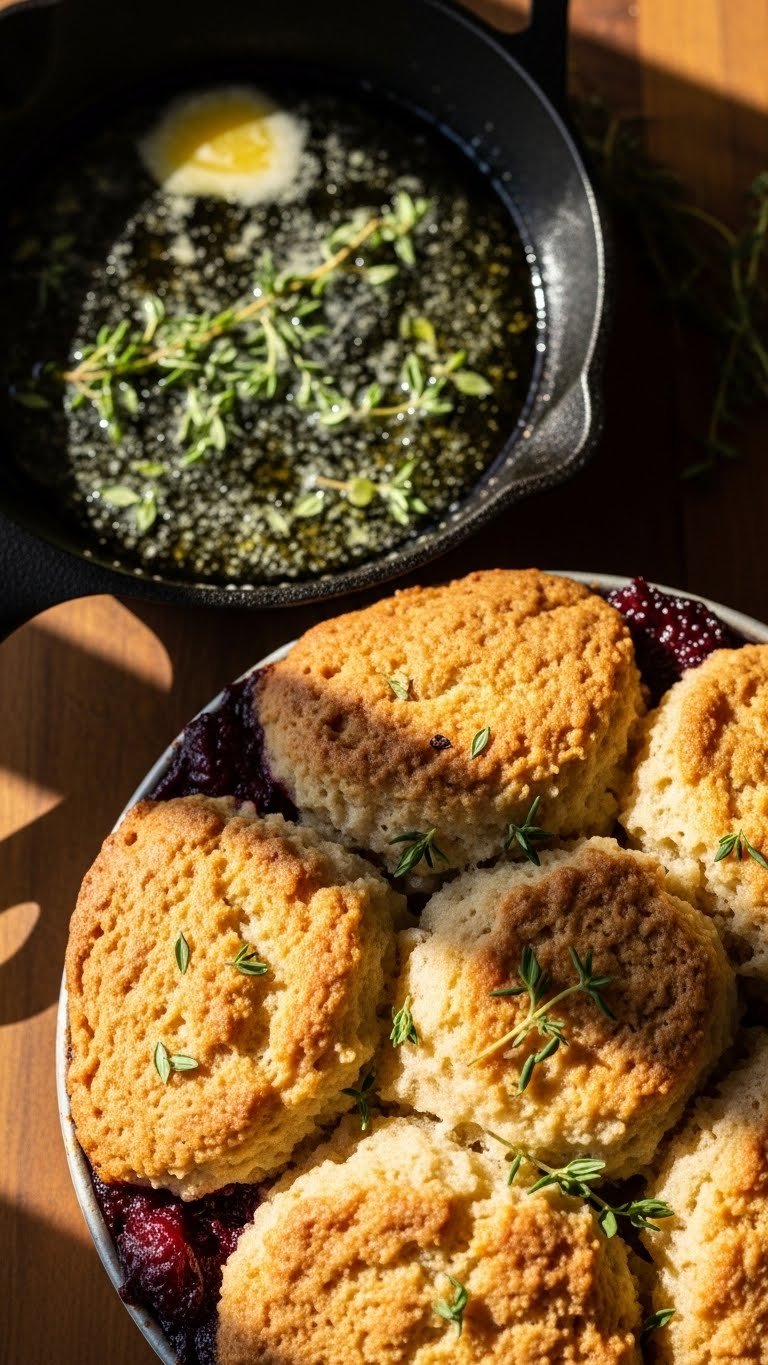 Browned butter and fresh thyme add savory, caramel notes that highlight the strawberries. The crust is nutty from browning while thyme brings an herbal lift. Expect sophisticated, warm flavors with a rustic finish. This one’s great when you want a grown-up, homey dessert. You’ll smell the toasty butter and bright herby notes as it cools.