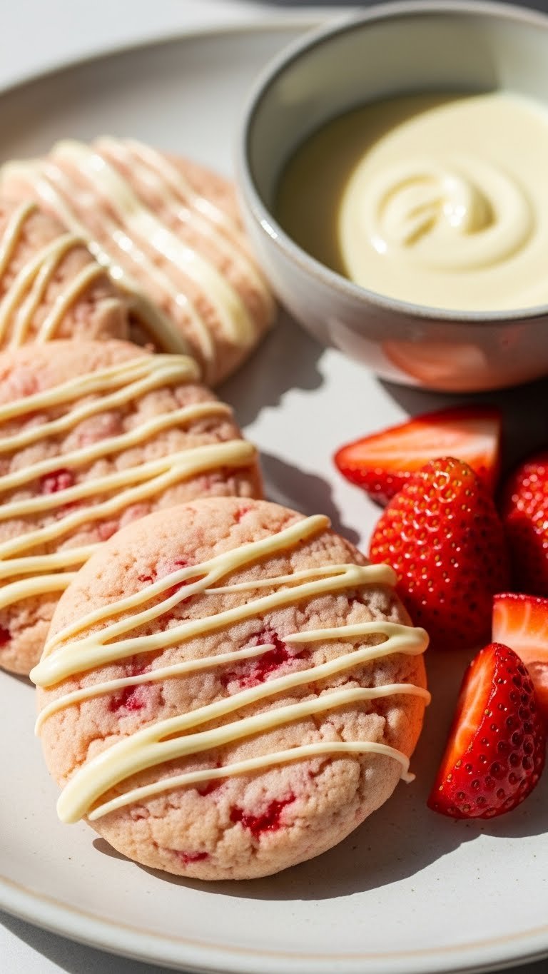 7. Strawberry Cream Cheese Cookies with White Chocolate Drizzle