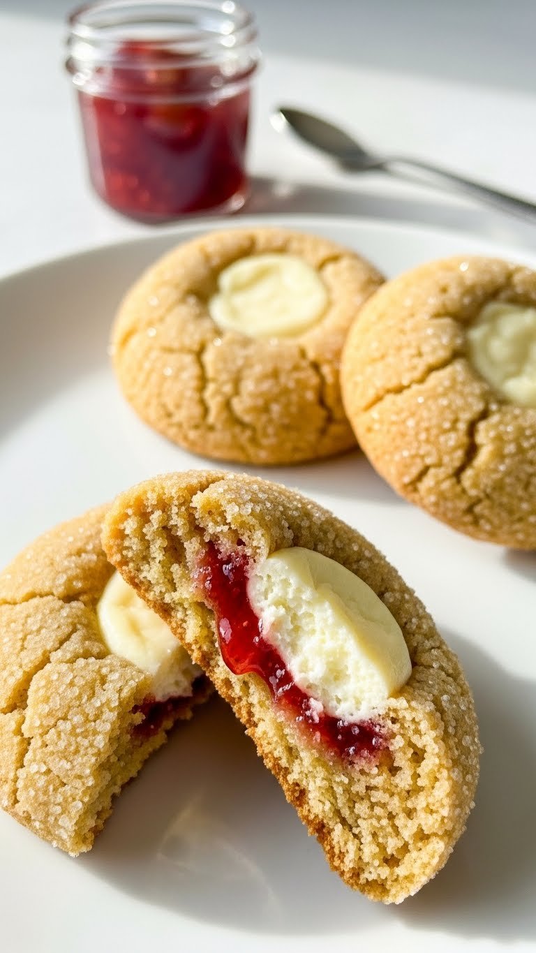 These cookies hide a gooey center of cream cheese and jam. The outer shell bakes golden while the filling stays soft and luscious. They’re dramatic and comforting at the same time. Great for weekend baking when you want something special. You’ll enjoy the surprise center when you bite in.