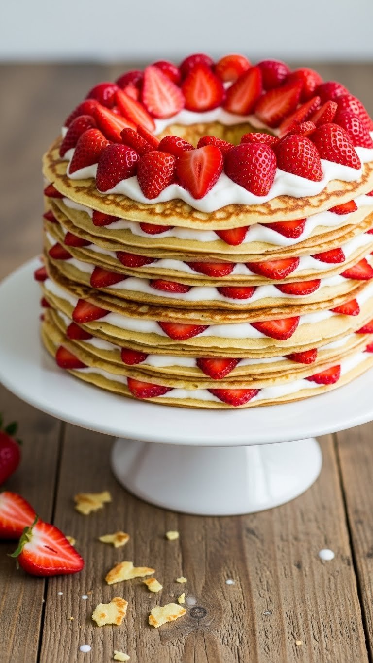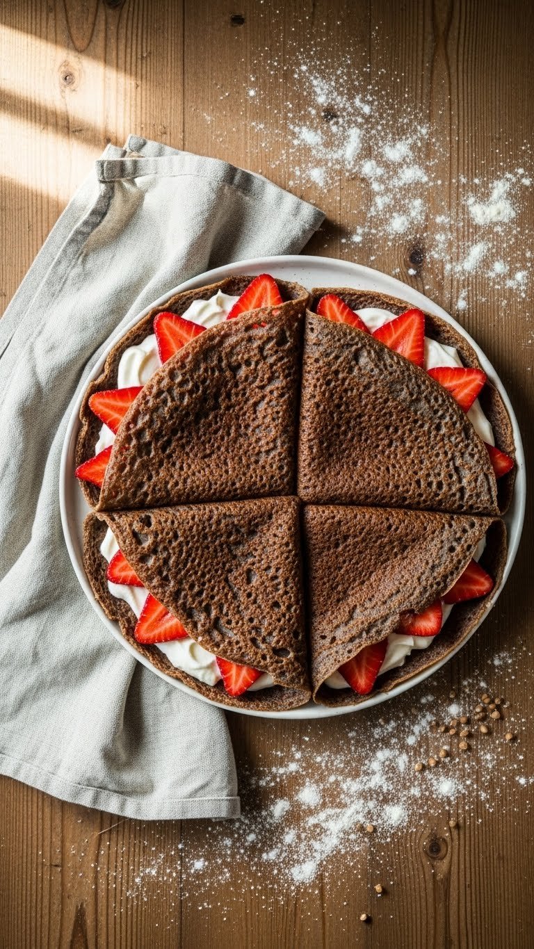 Using buckwheat flour gives a nutty flavor and slightly darker crepe. These gluten-free crepes hold up well to juicy strawberry filling. They’re thin with slightly chewy edges, perfect for anyone avoiding gluten. If you want earthy flavor with bright fruit, this recipe is for you. You’ll smell nutty buckwheat and sweet berries.