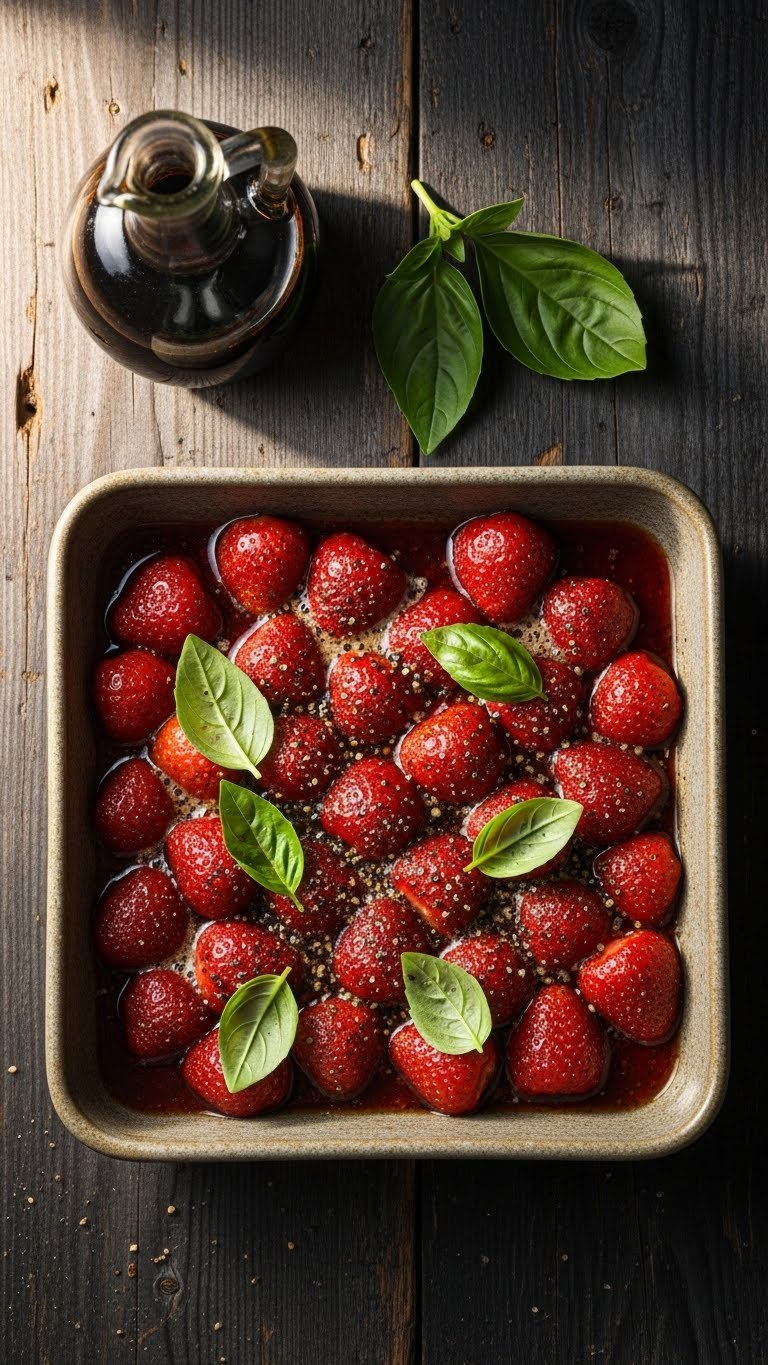Fresh basil and a honey-sweetened filling bring herbal brightness to this warm strawberry crisp. Basil adds a savory note that contrasts the sweet strawberries. It’s a lovely choice for garden parties or light summer dinners. Expect fragrant basil aroma and a slightly floral sweetness.