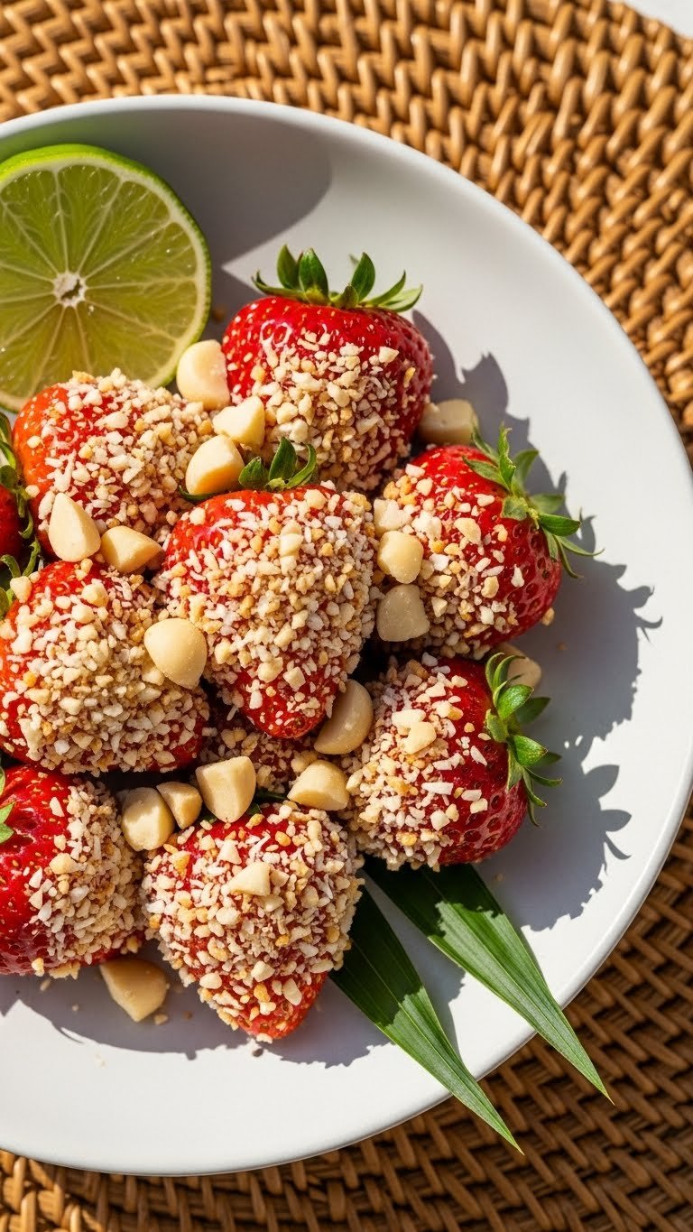 - Evenly sprinkle topping over strawberries.