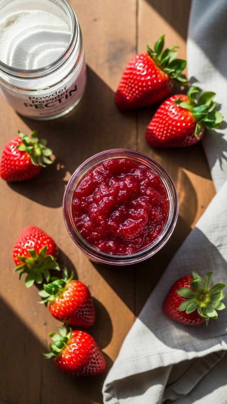 - Sprinkle 1 packet powdered pectin while stirring; simmer 2–3 minutes until slightly thickened.