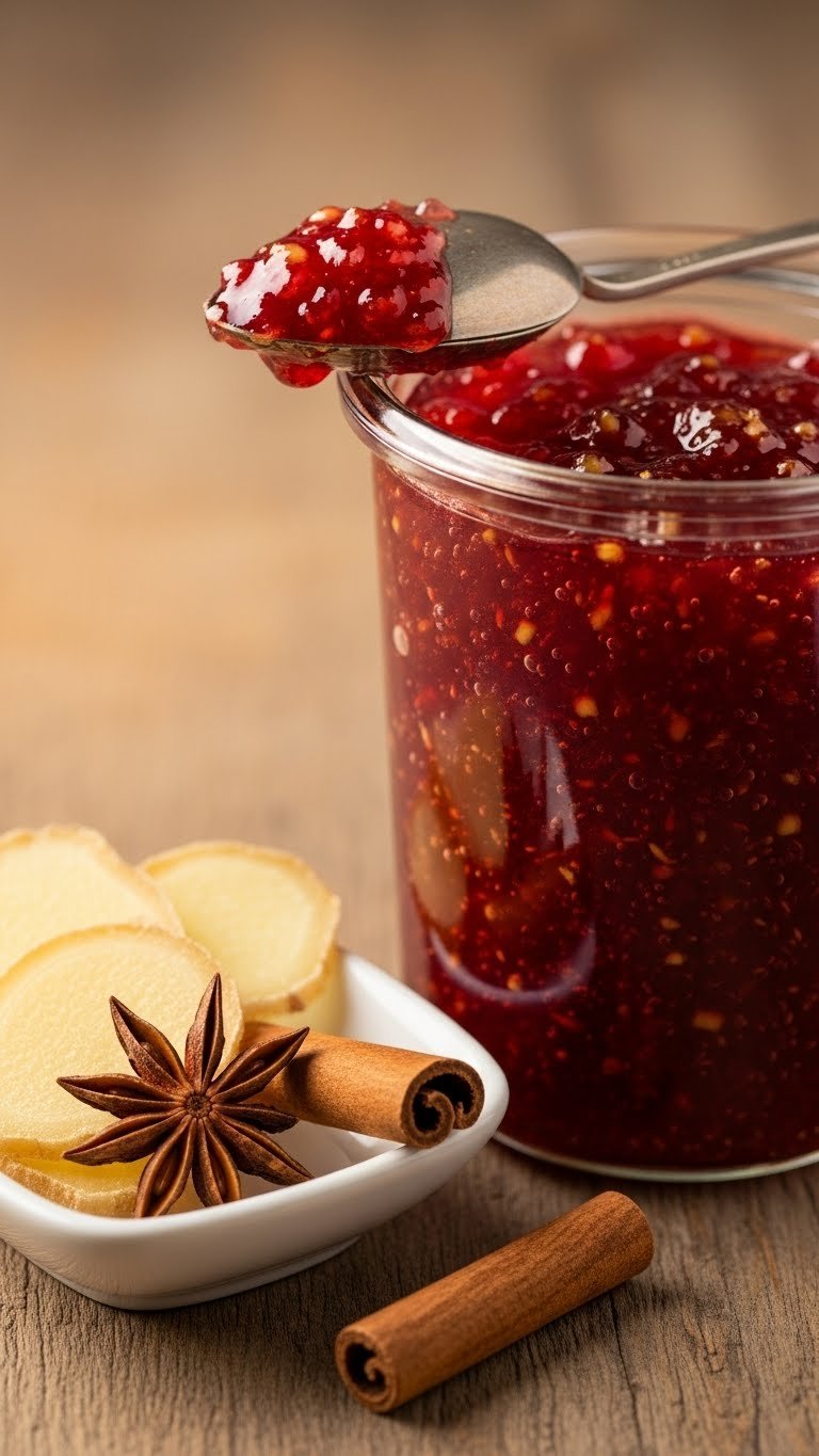 This spiced strawberry ginger jam warms the berry sweetness with fresh ginger and warm spices. The texture is thick with soft fruit pieces and ginger threads. It’s fantastic for fall brunches or weekday toast with a kick. You’ll notice a zesty aroma and a lingering warming finish.