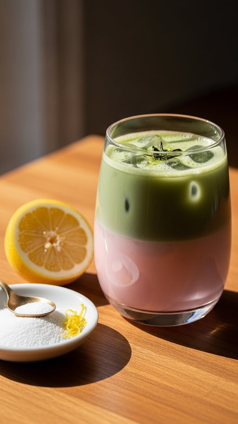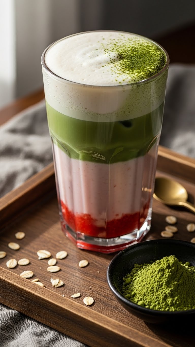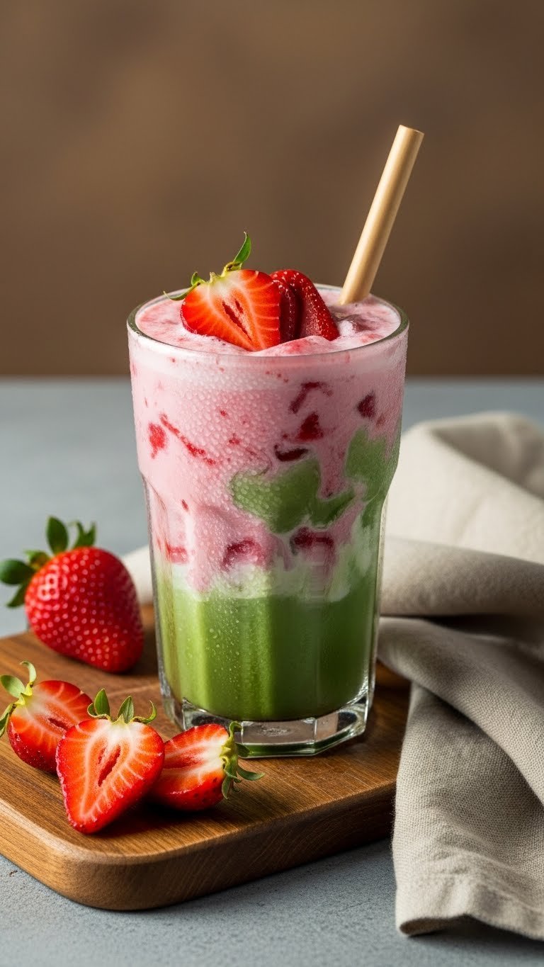 7. Low-Sugar Strawberry Matcha Latte — Light & Bright