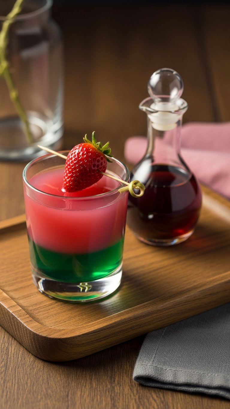 - 1 oz (30 ml) strawberry liqueur or vodka