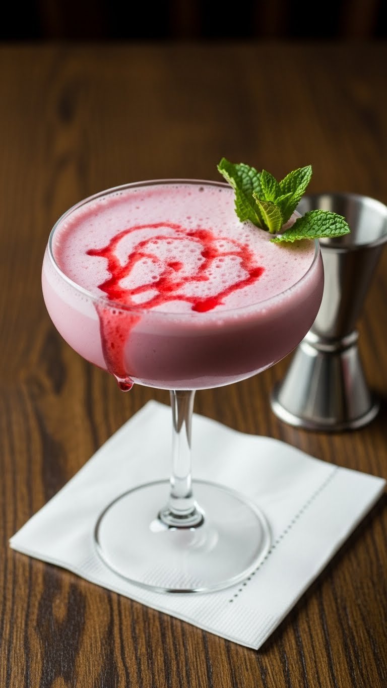 Serve in a coupe or tall glass with a cocktail straw. Garnish with mint and a drizzle of liqueur. Pair with dark chocolate truffles or shortbread cookies. Store no longer than 24 hours in the fridge; alcohol will change texture. Make-ahead: mix strawberries and liqueur an hour ahead for deeper flavor.