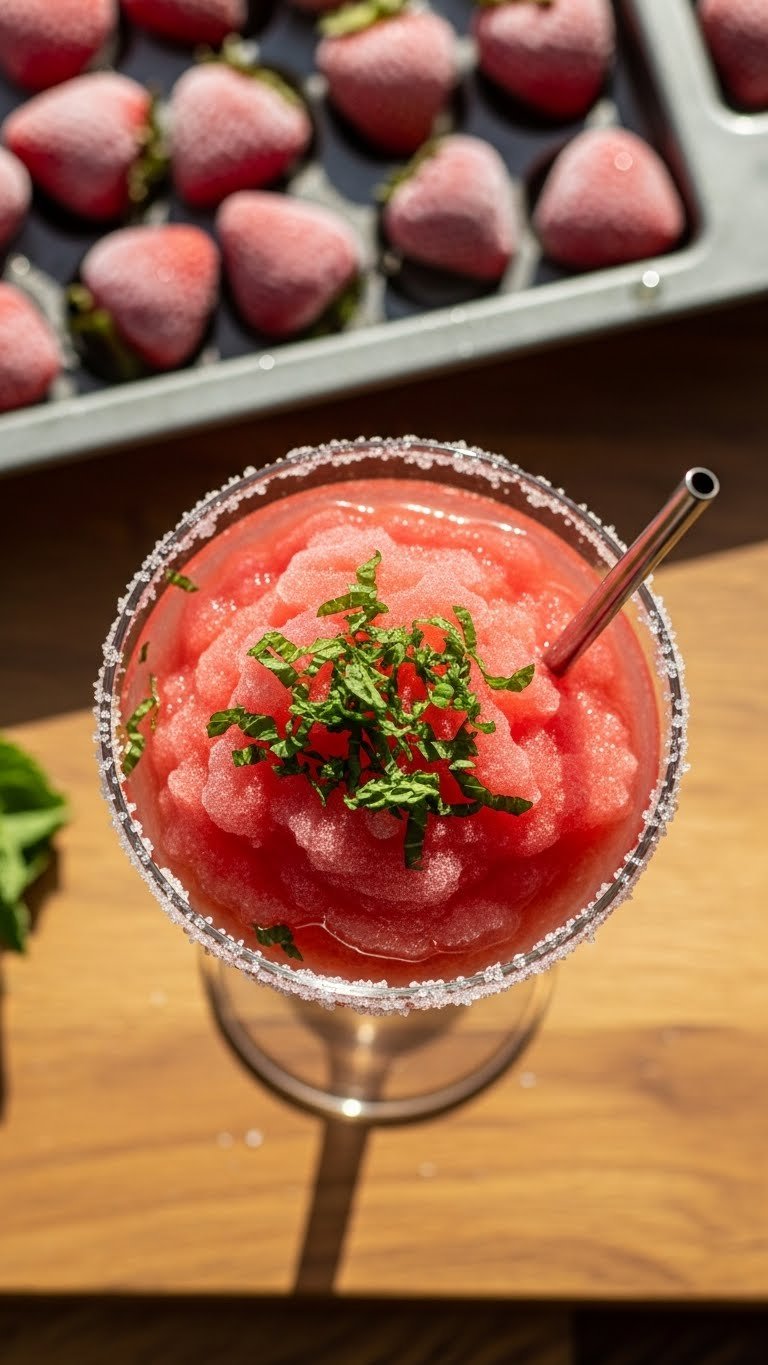 Serve in wide coupe glasses or mason jars. Garnish with a mint sprig and lime wedge. Pair with spicy shrimp tacos or fruit skewers. Store leftover slush in the freezer for 2–3 days, then re-blend. Make-ahead: freeze pre-mixed fruit and mint in ice cube trays.