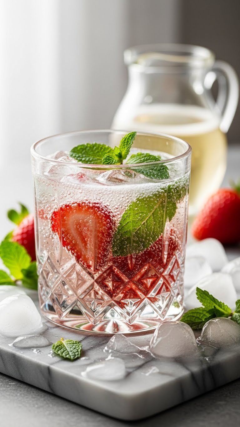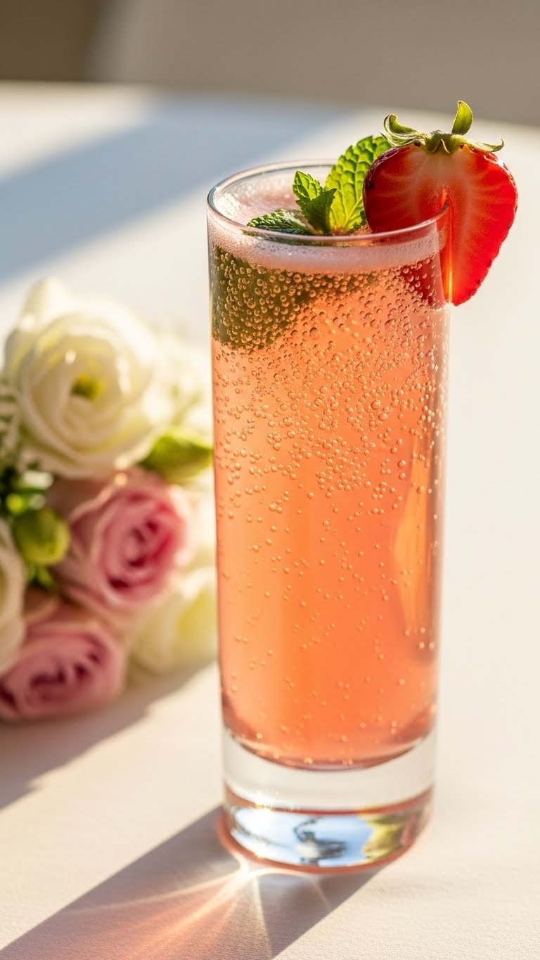 Serve in flute or coupe glass for fizz preservation. Add a small strawberry wedge to the rim. Pair with light cheeses or smoked salmon canapés. Store leftover base (no Prosecco) in the fridge for 12 hours. Make-ahead by muddling fruit and mint; add sparkling wine when serving.