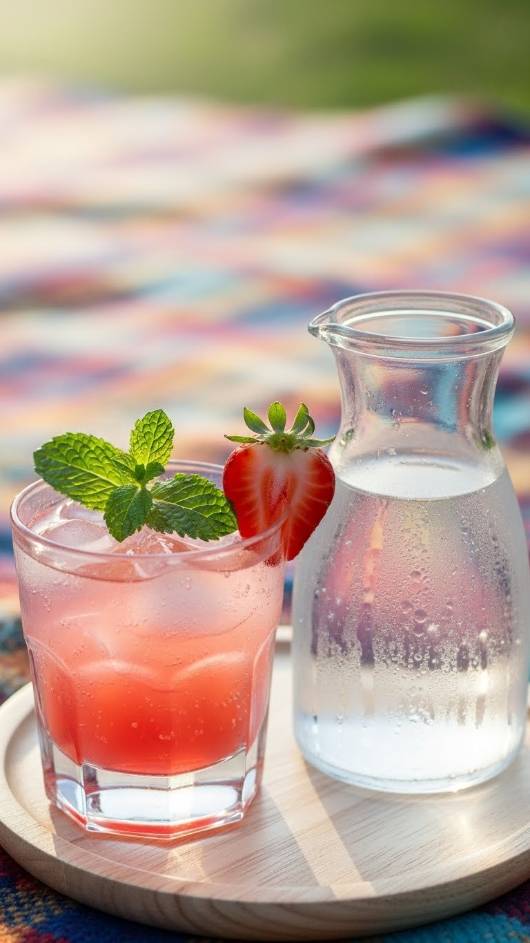 Serve in a short tumbler with crushed ice for texture. Garnish with large basil leaf and strawberry. Pair with grilled peaches or caprese skewers. Store the muddled base (no ice) in the fridge 12 hours. Make-ahead: combine fruit and herbs; add soda and ice at serving time.